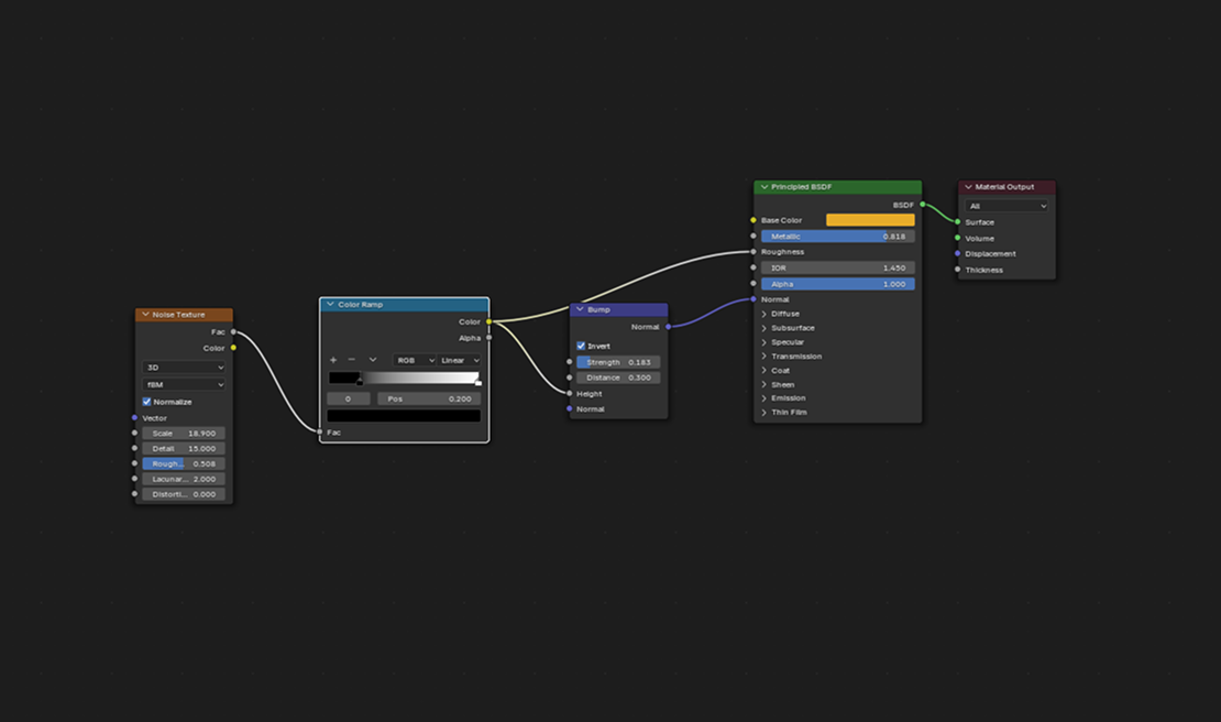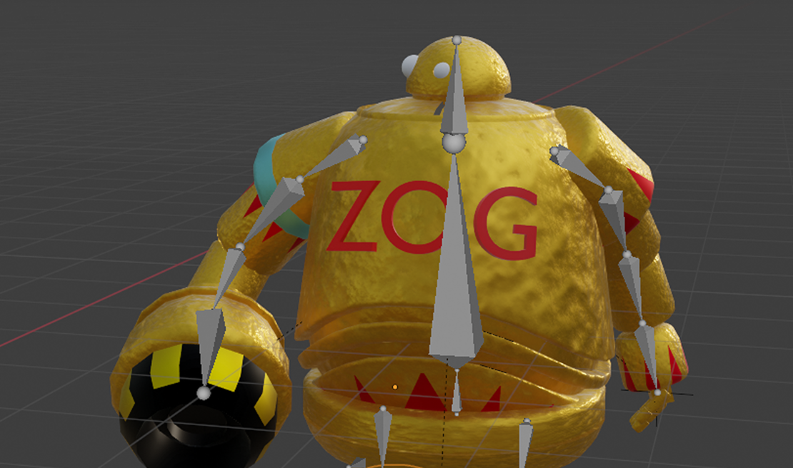 J’ai réalisé la modélisation du robot dans Blender, puis je l’ai riggé avec des os afin de pouvoir l’animer. J’ai également créé des textures procédurales pour lui donner une apparence dorée réaliste.